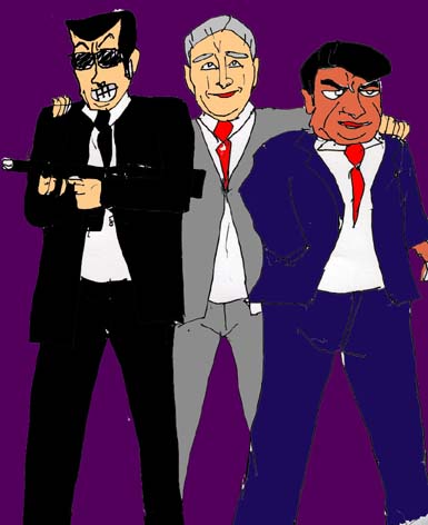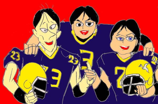 常に3人組で行動する仲良しトリオで中学の時の同級生。全員仙台市出身。元山はヘッドコーチでヒデキを補佐するが、理事長に利用され悪事に加担させられる。長身で浅黒く、毛深い男性ホルモンの塊のような男。スポーツ万能で体育教師でもある。薬師寺はアメフト部の顧問の先生で男性ながらも家庭科の教師。英機の妹、秀美を娶り8人も産ませ9人目も身ごもらせている。几帳面で優しい男だが少年時代は手のつけられない腕白小僧だった。精力絶倫。古川は校医でおとなしく物静かな男。全員既婚者。