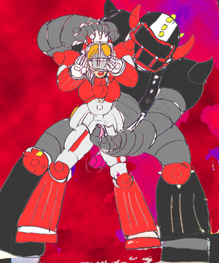 エビルギアは、サトミのヘルメットを鷲掴みにして強引に脱がせ、さらに、フロントアーマーを剥ぎ取った。そこには、女性器を模したラジエターがある。男性型の体型に改造されているサトミだが、ここだけは「女」の形を残していた。排水と余剰エネルギーの放出以外には機能はない作り物だが、ここが残っているかどうかは、生理的・精神的にかなり重要である。つまり彼女は機械化されているがロボットではなく、人間であり、かつ女だということである。女でなくなれば、発狂してメカと拒絶反応を起こして死んでしまうのだ。