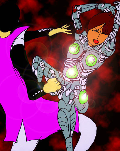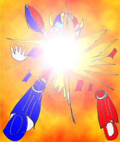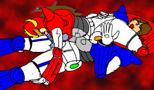 女は、胸から媚薬光線を発射した。するとサトルの体は意識とは無関係に反応して股間のカバーが開き、排水パイプが屹立してしまった。