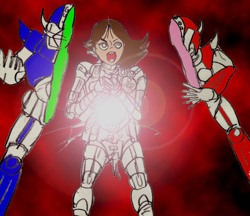 なんと、エビルブルーとエビルレッドは合体に割り込み、サトルはエビルレッドと、サトミはエビルブルーと合体してしまったのだ。