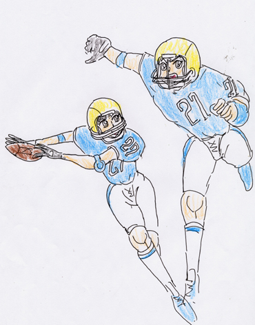 大河原のスナップで、試合が開始された。オサムの投げたボールは、まるで見当違いの方向に飛んでいった。誰もが彼の失投をせせら笑った。だがそれは天才児サトルの作戦だった。無人のフィールドに、何故か現れてキャッチしたサトル。そしてその陰のようにぴったりと密着するサトミ。まるで合体して1人になったかのような二人に京王のタックル陣が挑むが、こんどは二人は素早く分離し、どちらがボールを持っているかわからなくなってしまった。そして、敵を振り切ったサトミは豪快に先制タッチダウン、続くキックも鮮やかに決めた。