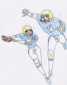 この試合、思うことあってサトル・サトミの双子兄妹はそろってレシーバーを勤め、QBはオサムが務めることになった。かねてから兄妹が研究中だった合体攻撃を試したくなったからだ。本来サトルがQB以外のポジションに入るときは、先輩QBが投げるのだが、今回は3年生抜きの試合なので、2年内での2番手QB(全体では4番手)のオサムが投げることになったのだ。