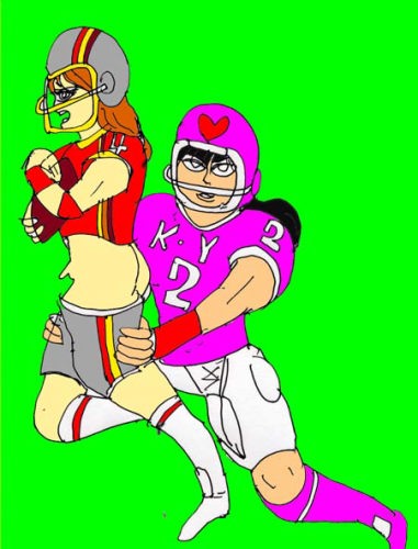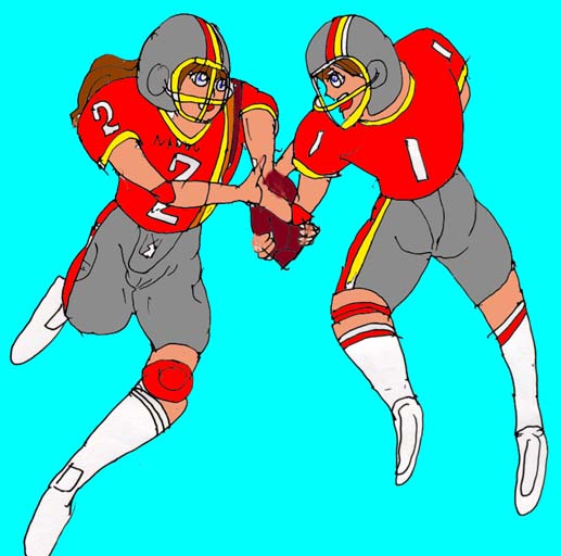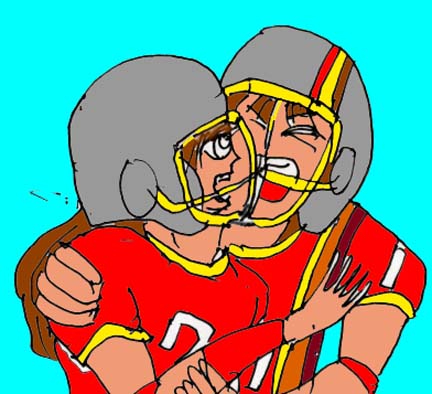 独走するサトミ・・・だがタッチダウン寸前、趙のカミソリタックルを受けてしまった!惜しくもタッチダウンならず・・・。だが!趙は一年前殉教の新島が感じたのと同じ、タックルの際の違和感を覚えた。柔らかく、しっとりとした触感・・・。そう、自らが押し倒した敵は、女の子・・・・。趙はその後悔と興奮から覚めることは出来なくなってしまった・・・。 |
