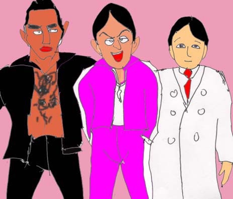 「おお、英美に奈保子♪」このピンクのホットパンツをムチムチに履いた女性二人は生徒ではない。2人ともヒデキの妹で、英美はトレーナー。奈保子は京葉学園の保健の先生、つまりスタッフなのだが、ベンチ入りしていた。しかし2人とももう30は過ぎているというのに・・悩ましい格好である。他にも3人の大人がベンチ入りしていた。ヘッドコーチの元山弘雅。長身で浅黒く、毛深く逞しい男性ホルモンの塊のような男で、ヒデキの後輩に当るが、やはり先ごろ引退して後進の指導に当っている。もう1人の真ん中わけ、ピンクのジャージの男は、アメフト部の顧問の先生、薬師寺英裕で、男性だが家庭科の先生である。そしてヒデキの妹、英美の夫でもある。2人の間には8人も子供がいるのだ。最後の1人の、地味〜な顔をした白衣の男は、古川和敏といって、南武高校でいう西本幸男に相当するチームドクターだ。モッさん、ヤッさん、フッさんと呼ばれる3人は、仙台市の中学の同級生であった。(担任は伊達宗幸先生)。