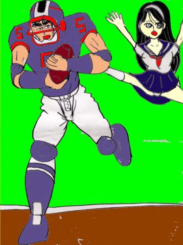 畠山!お前は紺の24番を狙え!赤松は赤の1番じゃ!京極高校の選手たちにマークの指示をする。山名元帥の若い頃はまだアメフトは行なわれていなかったため、直接プレーしたことはないが、英国、独逸の陸軍大学に留学してラグビー、サッカーの名手として知られた山名元帥は、さらに格闘技の達人でもあり、格闘球技・アメリカンフットボールの指揮はお手の物であった。なんと、この試合自らも選手登録してある・・・・。もちろん、年齢制限オーバーなので(満21歳未満のところ、97歳)実際は出れないが・・オーバーエージ枠最後の1枠を自分にしていたのだった。(後で年齢制限を知り悔しがる)