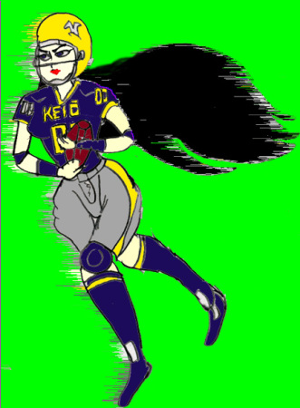 練習試合の際、京王の一番の決め技はこの4人の連携によるランプレー。QBがパスを千代に通したら、何があっても全力で全員が千代の楯となり、彼女の進路を切り開き、タッチダウンさせる・・・。これこそが京王の、真の決め技だったのだ。だが、実際には千代は試合に出ることが出来ない。だからこそ、「幻のエース」と呼ばれていたのだ。 そして、本人も仲間たちも、そして敵も、一目見ただけでわかるように、彼女はビルダー並みに鍛え抜かれたサトミとは違い、肉体的には背が少々高いだけで普通の筋量の細身の女性。タックルをまともに一度でも喰らったら、ジ・エンドであった。しかしこの戦法は応用され、京王はパスよりラン主体のチームとなっているのだ。さて・・。