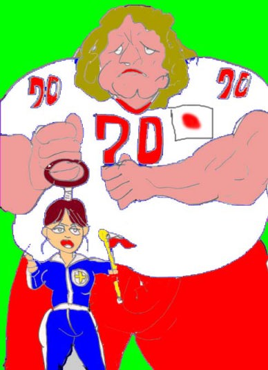 黒人のタックルにも耐えられる彼の肉体はまさしく不死身であった。そしてその隙にボールは、ぼくらのヒロイン・東サトミたんの手に・・・。そして日本の初得点は、サトミが挙げた!