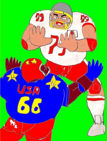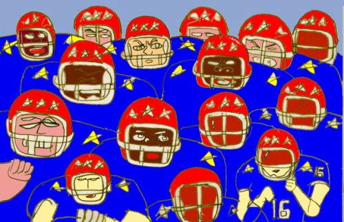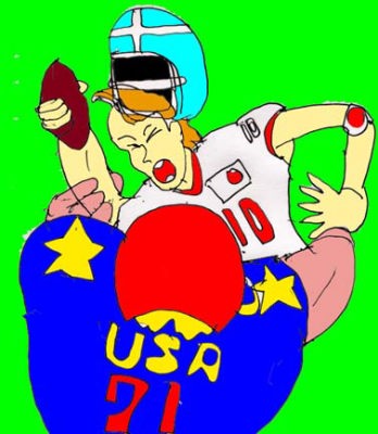 見事に敵のマークを外した。更に・当然怒り狂ってタックルしてくるアメリカ軍。だが、島田には特技があった。それは、自らにタックルしてくる選手のパワーを利用して返り討ちにすることだった。