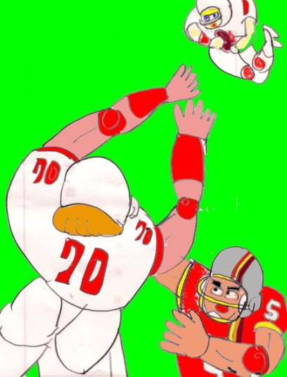 ボールは王子の手に戻った。その王子にタックルしようとする信彦。そこに割って入るデーブ。誰もが、ブロックだと思った。