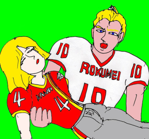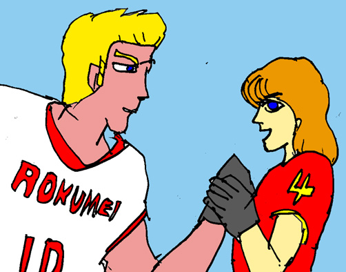 試合のほうは・・・あの事件以来取り乱したデビットだつたが、王子の華麗なプレーと、デーブの猛烈なタックルで、鹿鳴館は反撃した。そして陽一とサトミの代わりに入ったオサムたちがその餌食になってしまったのだ。