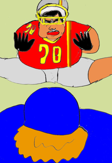 対する南武高校センターは大河原清。こちらも身長2m、体重140sの巨体。鹿児島県出身、中学柔道日本一の17歳。その風貌、言葉遣い、佇まいは全て、郷土の英雄、西郷隆盛に生き写しであった。この試合でも、身長185cm・体重140キロの巨体・油屋渕弥と、その弟で165cm・110sの丹波の2人を同時に吹き飛ばしたパワーは大会ナンバーワンの呼び声も高い。