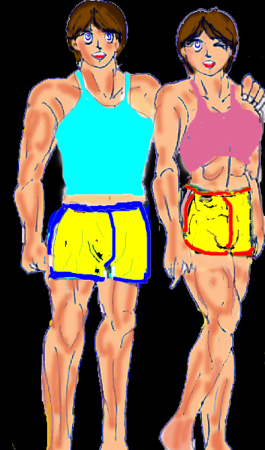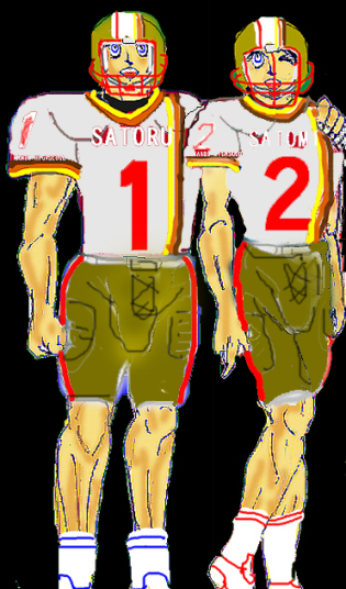 ★2人は、原則としていつも一緒にいる。自宅、学校、部活、戦闘、その他私生活全般にである。その大半は、学校指定の体操服(この学校は長袖ジャージがなく、真冬でも半そで・短パン強制である)で過ごすことが多く、家にいるときや登下校、部活の練習の際も大抵この格好である。サトミは普段はサトルと同じ短パンだが、まれに本来指定のブルマを着用することがある。その際は、普段短パンなので、日焼け後が白く目立つ。また、サトミは登下校時や授業中、上セーラー服、下短パンのことも多い。私服を着る機会は少ない。2人とも服装のセンスは地味であり、無地やワンポイントのTシャツに、短パンまたはジーンズというラフなものが多い。ペアルックが多いが、それは同じものを一緒に買うことが多いからである。また、識別用に、サトルは青系、サトミは赤系の色やワンポイントまたはラインを好んで使う。サトミはスカートを穿くことは珍しいが、ジーンズ生地のマイクロミニと、赤いチェックのものをもっている。いずれもアメリカ製で父から贈られたものである。なお、2人は体操服の短パンを下着代わりにしているため、いわゆね下着(トランクス、ブリーフ、パンテイ)というものはあまり着用しない.サトミはスカートの下は短パンかなんとノーパンである。また、2人はスポーツ万能で、アメフトのほかにも、サッカー、バレーなどが得意である。
