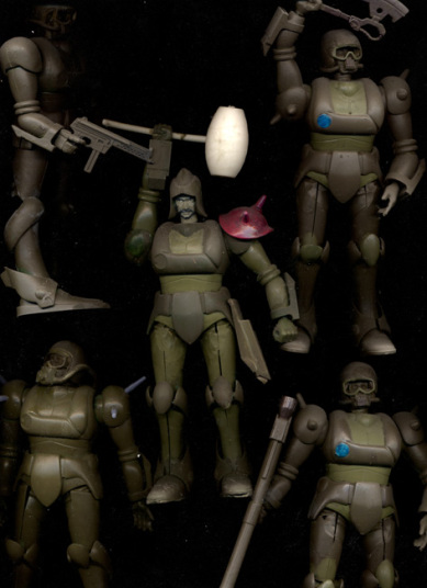 異形の戦士の中にも騎士の称号を持つものもいる。右画像左から、ドン・リザードマン(獣人軍団)、ゾンビナイト(超人軍団)、シルバーナイト(騎士団)、ドクロナイト(怪人軍団)、サー・カッパード(獣人軍団)。