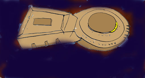 「比叡」は、その昔加藤博士の研究別荘、つまり隼人の生まれたところだったものを拡張した月面基地に碇を下ろした。初めての航海の最初の目的は無事に果たしたのである。ここで宇宙船の外装に必要な鉱物を積み込み、基地職員の交代を済ませ、いよいよ火星に。