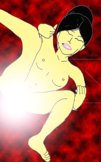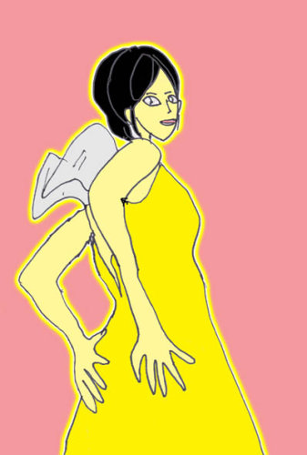 背中のジッパーを静かに下ろすと・・・。彼女の背に小さな翼が生えていた。そう、通称「先祖がえり」だった。風に吹かれると静かに空に舞い上がった。それだけではない。翼から発するオーラの力で、宇宙へも飛び出すことができるのだ。