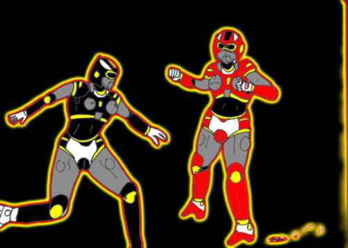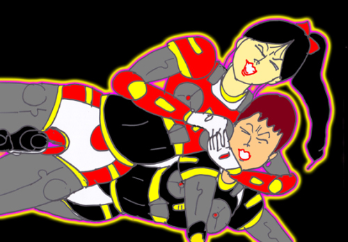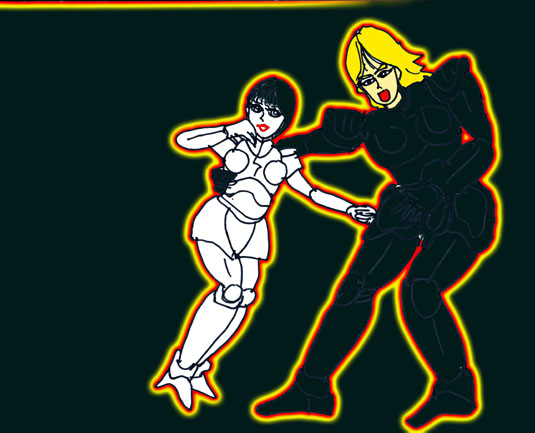 力強く、メカニカルな中にも、妖しげな女のニオイを撒き散らしながら、激しく戦う二人。
