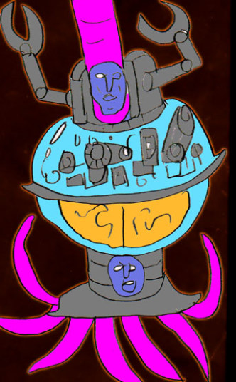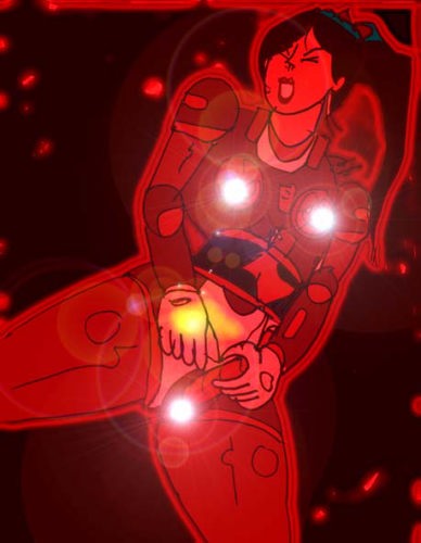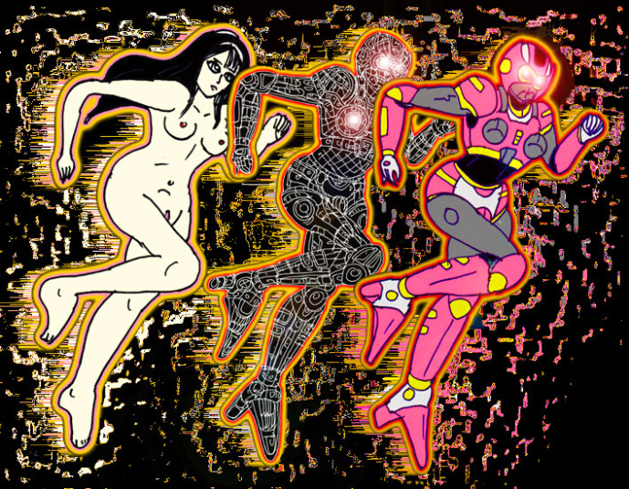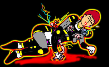 香織の肉体は、男性型メカ、女性型メカ、そして生身の女性の部分がまだらになって、メカ部分の熱が生身の部分を焼き、生肉の焼ける悪臭を発生しながら激しくスパークした。