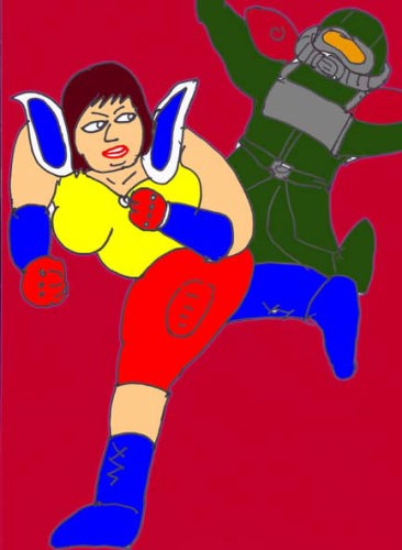「キャァ、動けないわ・・・」絡めとられ身動きが出来ない由香。それだけではない。彼女の仮面の中に警報音が鳴り響く。胎内に侵入を許せば、由香は絶命するのだ。