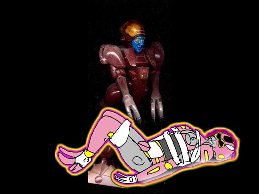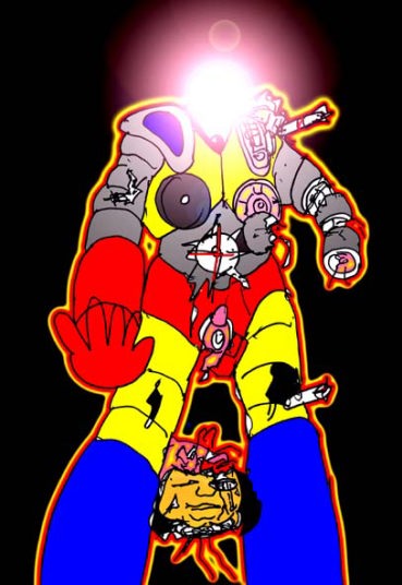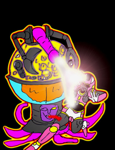 それは、巨大な男根と触手、それに機械のマジックハンドを持つ不気味なガードロボットだった。いや、ロボットではない。半透明の半球状のボディには脳みそと不気味な機械がたっぷり詰まっていた。それも、1体だけでなく、何体もいる。