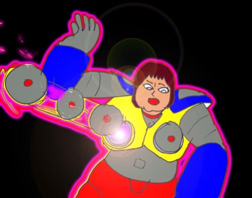 ついに弾切れになってしまった。リズの大きなボデイには何発ものミサイルが収められていたが、撃ちつくしてしまった。最後にはミサイルではなく、ビーム砲のついた乳首が出てくる。これが彼女の本来の乳房だ。