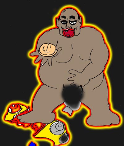 「ガッハッハ・・・おろかな。奴隷サイボーグの分際で宇宙の覇王であるワシに逆らうとは片腹痛いわ。ガッハッハ。」そして・・・