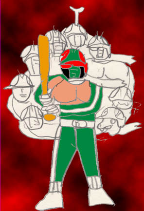 見事、仮面バッターのどてっぱらを貫いた白球は炸裂し、仮面バッターは文字通り「バッター・アウト」となり宇宙のチリとなった。