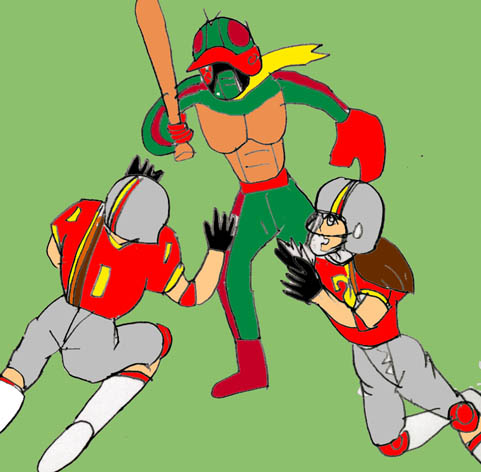 「やい、仮面バッター!野球選手の癖にバットで殴るとは卑怯だぞ!野球で勝負しろ!」
