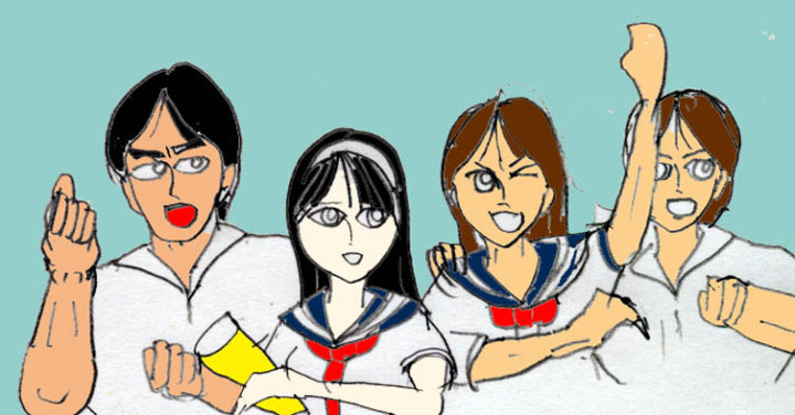 「4番・ファースト・城国くん・・キャーー!助けて〜」