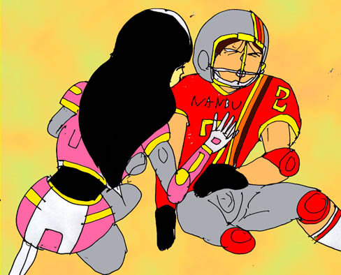 大介と同じ南武高校のユニフォームを着ている。2人のうち、1人は長い髪をメットから覗かせていた。女の子、であろうとはよもや知る由もなかろうが彼女は日本唯一の現役高校フットボーラー、東サトミ。もう1人はその双子の兄で天才QBのサトルだった。