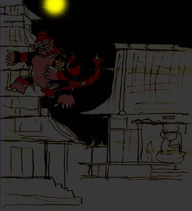 なんと、猿の化け物が珠美を捕え、宿の隣の西寺の五重塔によじ登っているではないか!
