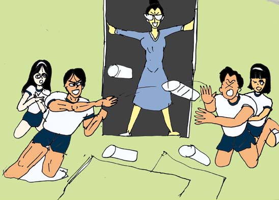 見回りに来た哲子先生に叱られてしまう・・・そして由香と珠美は女子の部屋に渋々帰っていった。