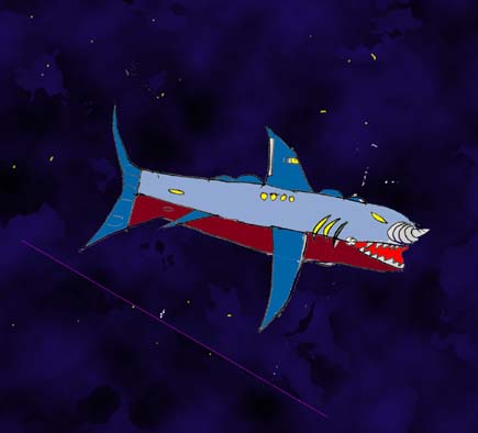 かつてワルモナイトの旗艦だった、キングジョーズ5世型戦艦・・・。鮫を象った獰猛かつ強力な艦である。水中、水上、空中、宇宙のいずれも高速移動できる(金剛などのR級は、海中、海上、宇宙では高性能だが、空中での飛行速度が遅く、水上以外では武装が半減する欠陥があった)上、口の部分で敵艦を食いちぎることもでき、ブリッヂの上部や安定翼も強力なカッターになっている、獰猛な戦艦である。