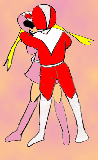 レッド(珠美)は、強引にピンク(永田)に抱きつき、唇を奪った。