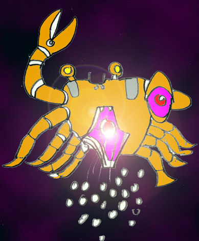 余談ではあるが、宇宙蟹「カニメテ」の殻はその後継ぎ合わされ、ガニメデ基地の看板となったが、まるで蟹道楽のようだと不評であった。