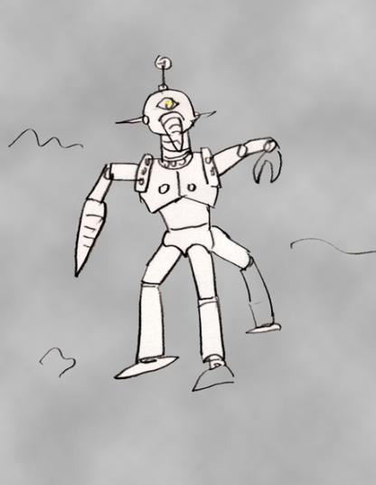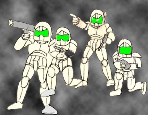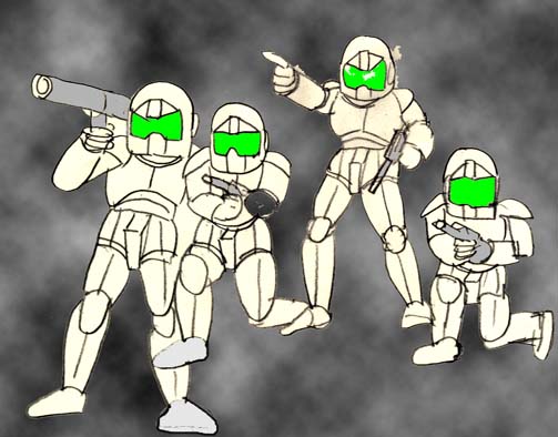 ガードロボットは量産型で、かつてイオで闘ったのと同型だが、雪原での戦いのためか白く塗られていた。