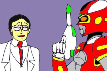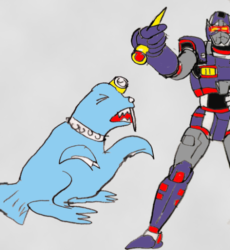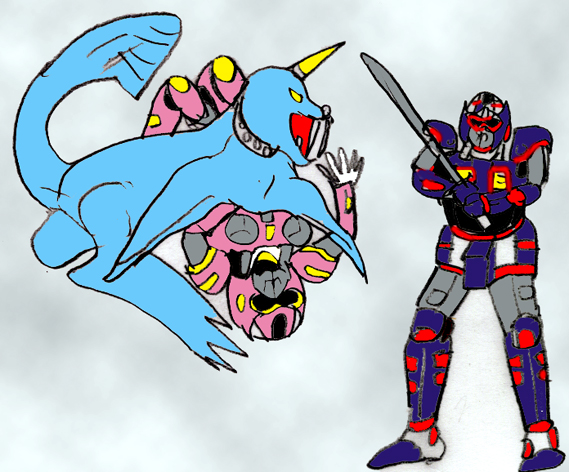 「そう、たしかに凶暴な怪獣よ。でもわたしの解析回路によれば、頭の角で操られているだけなの。本当は大人しい生き物なのよ。だから殺さないで隼人君・・・角を・・角を折り取るのよ!」
