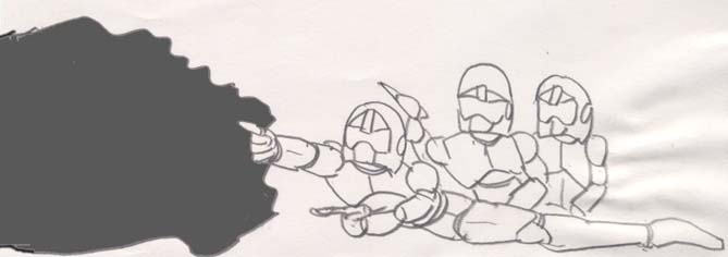 「よし、僕たちも行くぞ」「OK♪」バルディスターはガードロボットを全滅させ、その間に2号艇も基地に突入。一方、艇を失った隊長らは徒歩でなおも前進する。それをガードするバルディスター。そして遂に入り口を発見した隊長らだったが・・・。