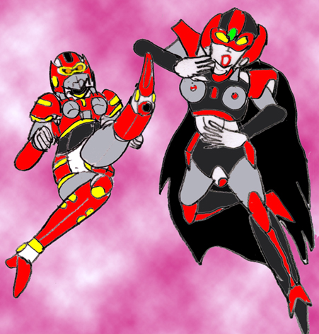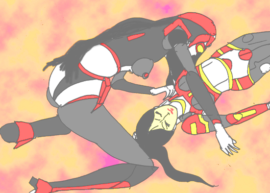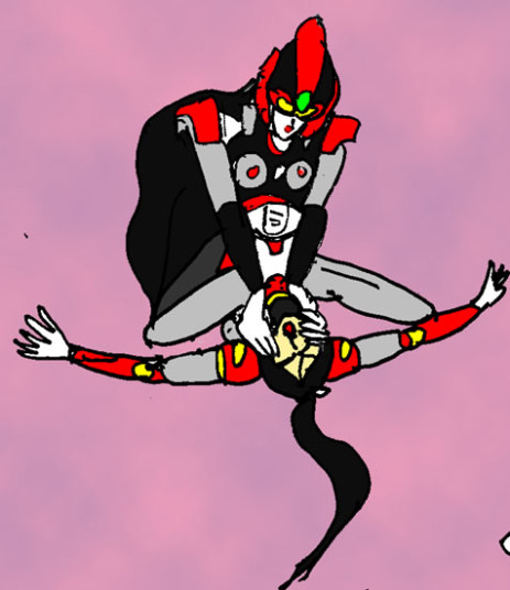 一瞬のけぞった真理子だが、髪の毛を使って香織を転ばせると、押し倒し、馬乗りになって首を絞めてきた。女とは思えない、すごい腕力だ・・・。香織、絶体絶命・・・。バルディニウムX合金製のその赤い体に皹が入る。