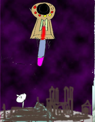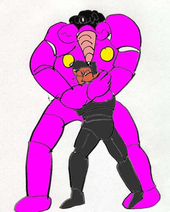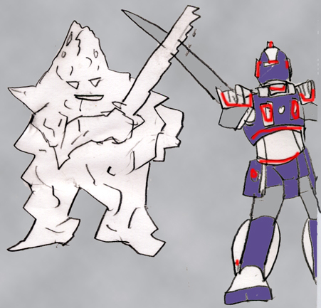 「ハハハ・・無駄無駄・・・。行け、怪人ボッキーマ!太子、今ごろ本星でもクーデターが起きて貴様の両親とウスノロのアニキもあの世に行ったか、よくて石牢の中だぞ。そして、貴様にはここで死んでもらう。死ね!」