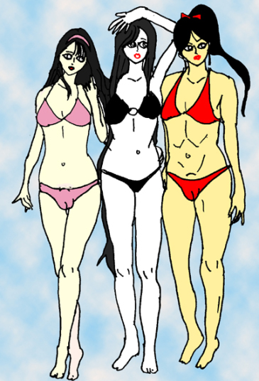 麻理子は黒。香織は赤。そして由香はピンクのビキニを纏う。