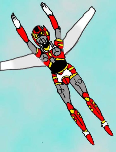 ヘルメットを被り、ジェットウイングを背負った香織はガラスを割って飛び立って行った。