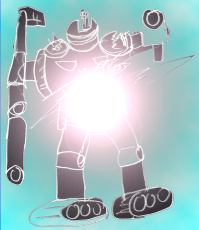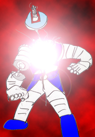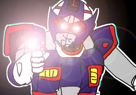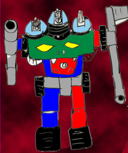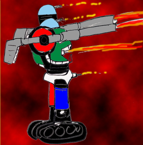 敵のロボットは、顔が回転速射砲、両腕がキャノン砲になっている。