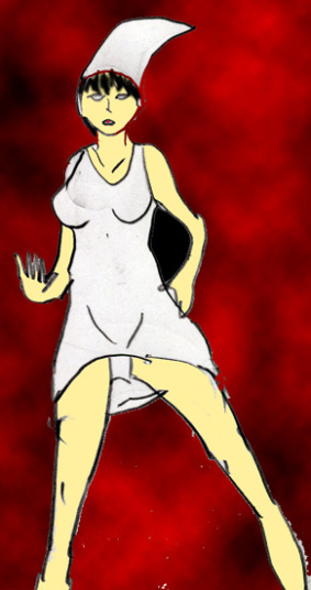 二人は用心深く影の見えたあたりに。するとそこには、白い頭巾をかぶった女性が。
