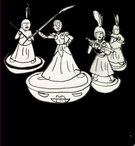 立ち乗りUFOに乗った騎兵のようだ。その数数十.