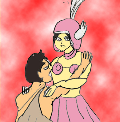 立ち乗りUFOに乗った女騎士たちは、比叡に群がり、また、隼人と由香に挑む。