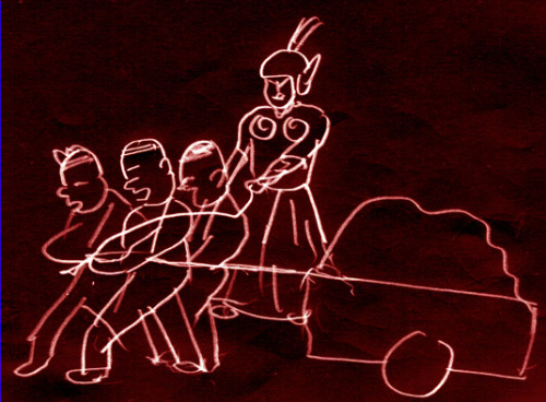 そこで博士たちが見たのは、女たちに鞭で叩かれ強制肉体労働させられる男たちの姿であった。