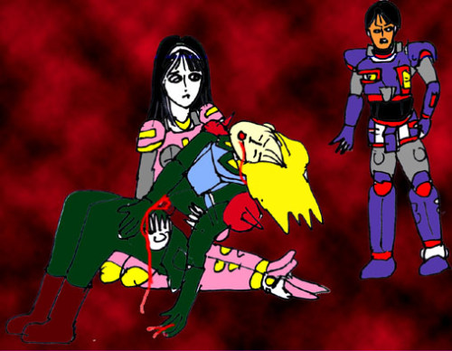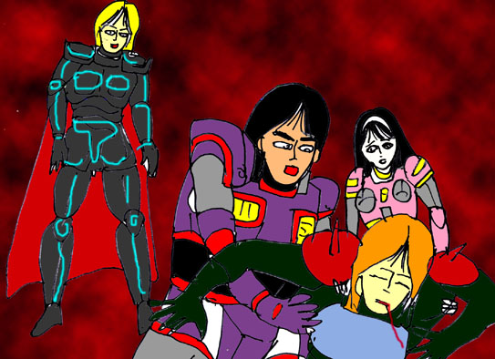 「死なないで、リョナサン少尉・・・・」必死に細胞活性光線を浴びせる由香。