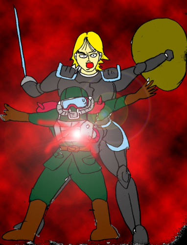 「問答無用!」いきなり兜をかぶると王子は挑みかかってきた。
