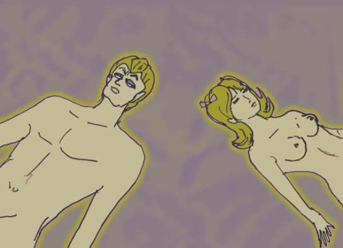 ムーリンはそう言うと、失禁をして気絶した。彼の小便と、二人の血、そして貫通したとき迸ったチャーミーの処女喪失の血・・・。その怪人物は、それを全て舐めとった。