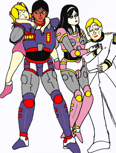 あのとき、爆破された冥王星基地と運命をともにしたデュークオブダークは、主な戦闘員は戦死し、生き残った上層部は脱出したが、氷に埋まっていた機関部は無事で、機関長以下機関兵は無事であり、あとで惨状を知り、虫の息だった将軍を蘇生し、応急修理して、太子のピンチをかげながら助けていたのだ。